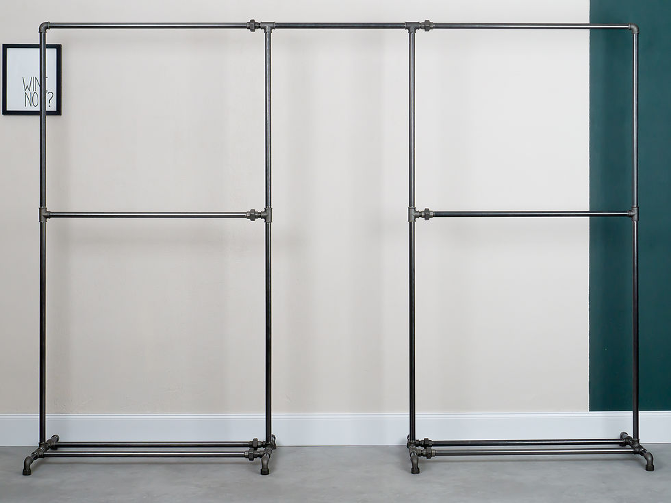 Industrielle Kleiderständer sind nicht nur funktional, sondern auch ein stylisches Statement. Sie verleihen jedem Wohnraum einen urbanen Charme. Ordne deinen Kleiderständer nach Farbe, Kleidungsstück oder nach Anlass.