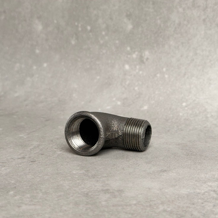 Dieser Winkel verbindet ein Rohr mit einem anderen Fitting. Dies eignet sich vor allem für einen eleganten Standfuß indem man eine Kappe oder einen Flansch auf das Gewinde des Fitting schraubt.